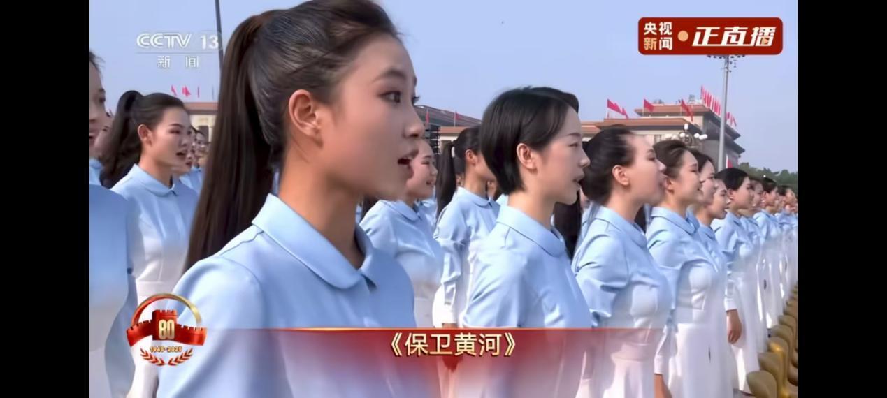 清晨的天安門廣場上,北建大合唱團成員身著整齊服裝,與首都高校3000名青年學子共同唱響《在松花江上》《保衛黃河》《沒有共產黨就沒有新中國》等7首革命歌曲。激昂的旋律中,師生們用飽滿的情感和精湛的演唱,再現了抗戰時期中華兒女同仇敵愾的壯闊圖景,更以新時代青年的蓬勃朝氣,向祖國和人民交出一份生動的“精神答卷”。